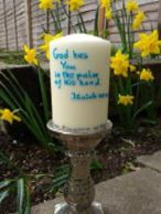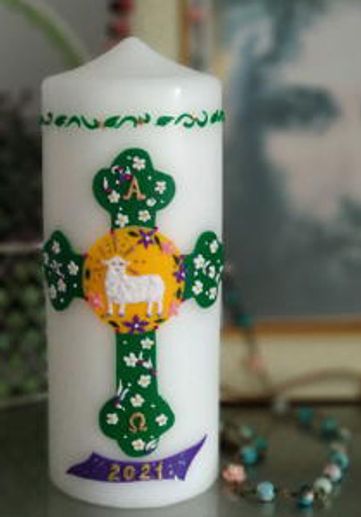Anna Liwak, the parishioner from Brandon who created our beautiful Paschal candles is now taking commissions for Candles.