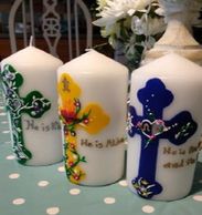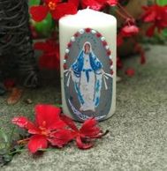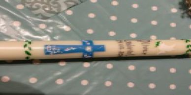 Her candles are handcrafted and can be personalized for First Communion, Baptisms, Memorials, Anniversaries or any other important occasions. Individual prayer candles are also available.
